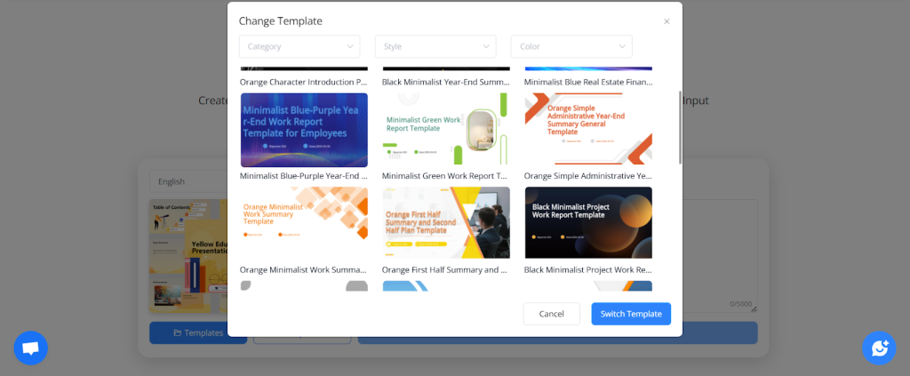 Consistency is key when producing presentations for clients or internal teams. The AI Presentation Maker lets you choose prebuilt templates or upload your own branding file. Fonts, colors, and layouts match automatically, so every deck looks professional without manual tweaks.