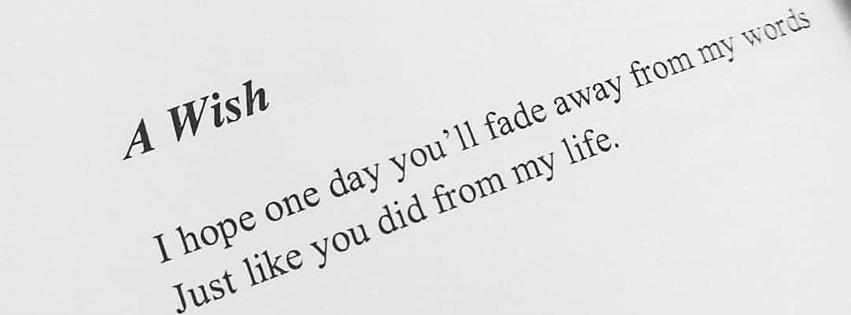 A Wish. I hope one day you'll fade away from my words Just like you did from my life. Image credit goes to respected owner amnadhanani from her latest book "You were the Soul to my Existence".