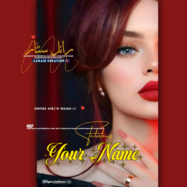 Enjoy today's share royal star girl dp, which is edited and published by Laraib. Half face royal girl dp in red lipstick. Put your name in the box to get your name printed on the photo.